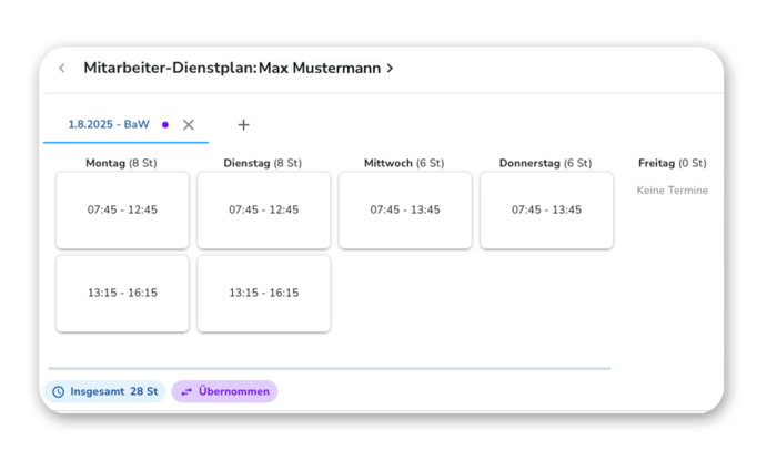 Übernahme vordefinierter Stundenpläne in den Kalender (statt täglicher Einzelerfassung)